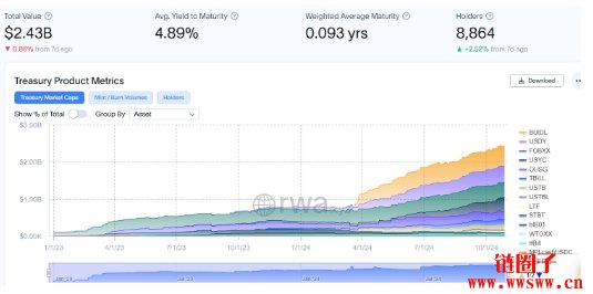 美国国债代币化( 规模已达24.3 亿美元 )