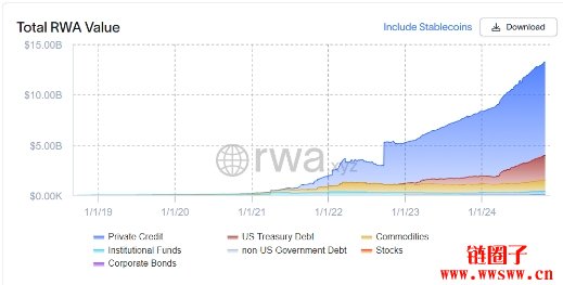 美国国债代币化( 规模已达24.3 亿美元 )